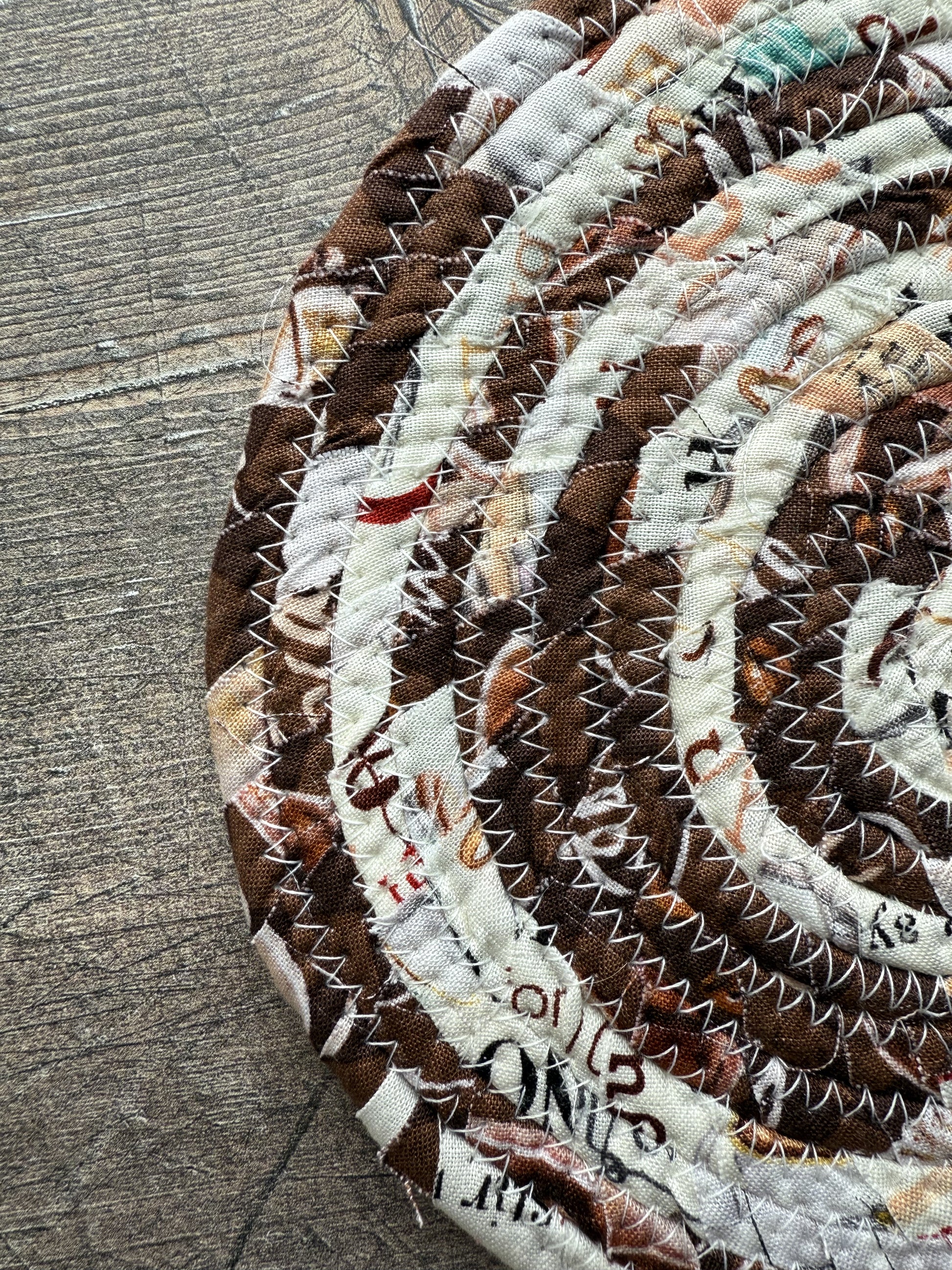 A sewing machine Is required for completing this project. My 12-year-old son loves making these bowls and trivets, and is a wonderful entry level project for anyone looking to make something unique and functional with their sewing machine.